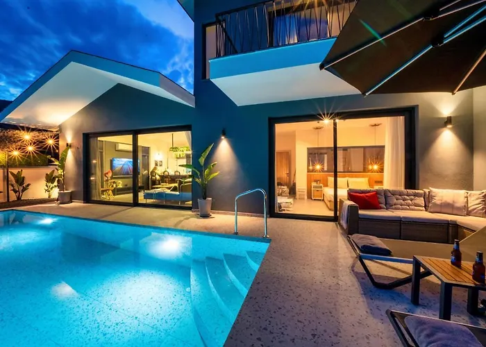 The 2-bedroom Villa Oxy Private Pools & Seaview & Heated Indoor Pool is nestled 10 minutes by car from Cami and provides a Jacuzzi and an indoor pool.